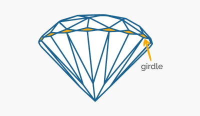 The girdle is the thin perimeter of a diamond, dividing the crown (top) from the pavilion (bottom).